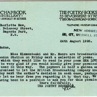 - Typed letter from the Poetry Bookshop to Charlotte Mew, August 24, 1926
