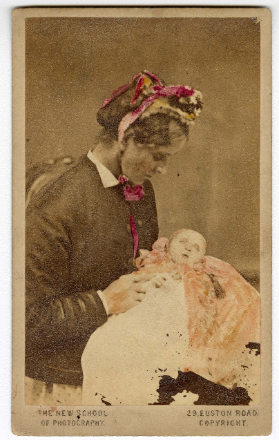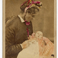 - Hand-colored photograph of Charlotte Mew's mother holding a baby, undated.
