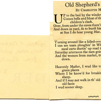 - Clipping of Mew's poem "Old Shepherd's Prayer" from "The New Leader Book" inscribed by Mew to Sydney C. Cockerell "With every good wish from Charlotte Mew Xmas 1922," 1922.
