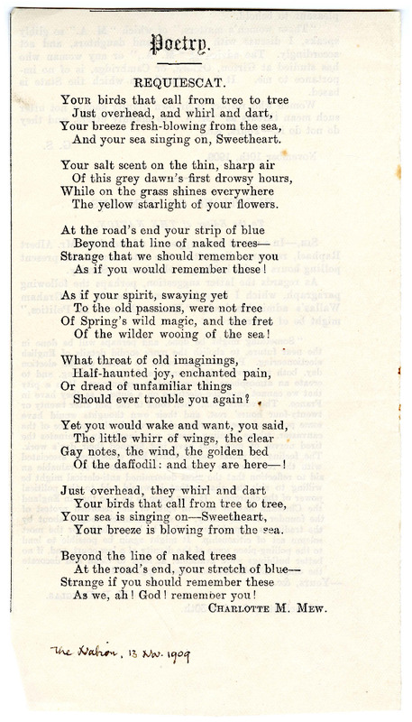 Sydney Cockerell's clipping of Requiescat from The Nation, November 11, 1909