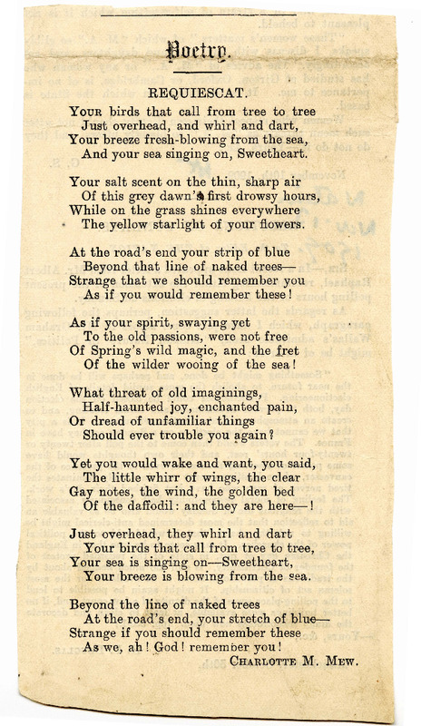 Charlotte Mew's clippings of Requiescat from the Nation, November 11, 1909