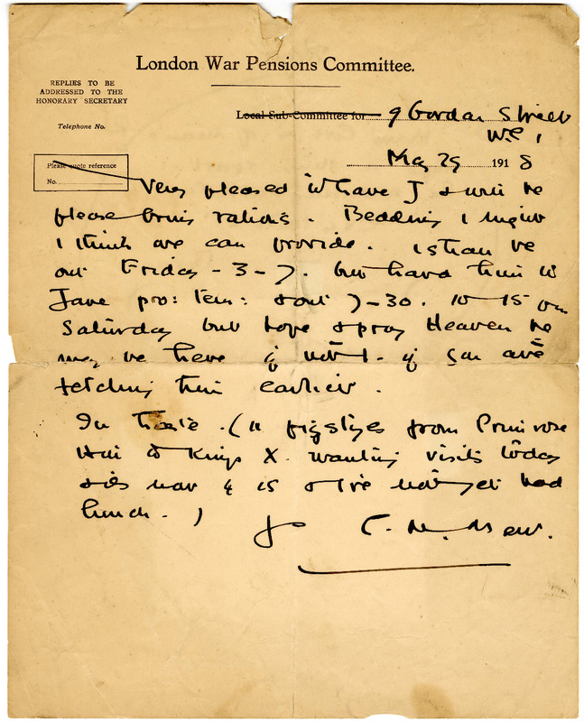 Autograph letter signed from Charlotte Mew to Alida Klementaski Monro, May 29, 1918