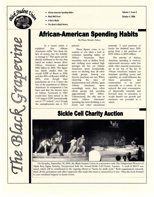 Volume 1, Issue 3 of the Black Student Union's newsletter, "The Black Grapevine," published on September 20, 2006.