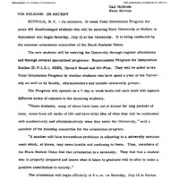 - Photocopied typed document describing a "10-week Total Orientation Program" for disadvantaged students, July 10, 1969.