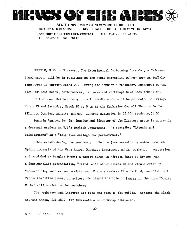 - News of the Arts press release, March 15, 1976