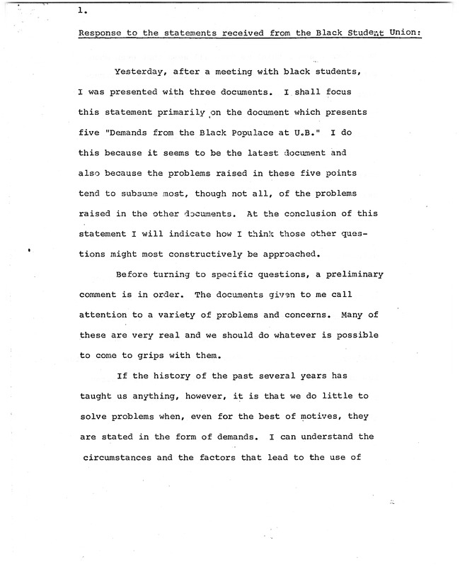 Response to the statements received from the Black Student Union, April 27, 1972
