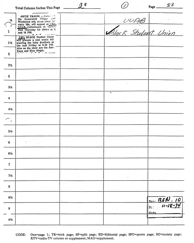 - Photocopied newspaper clipping of Buffalo Evening News untitled article, November 18, 1974.