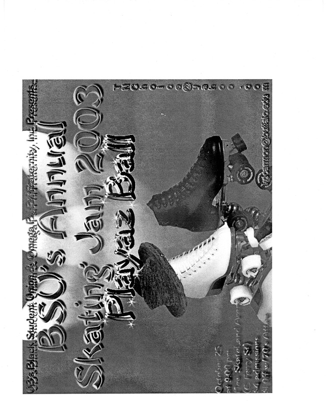 - Photocopied typed flyer for "BSU's Annual Skating Jam 2003 Playaz Ball" event, October 25, 2003.