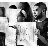 - Photocopied black and white photograph of group of students protesting at Lippes Concert Hall, Slee Hall on North Campus, October 9, 2015.