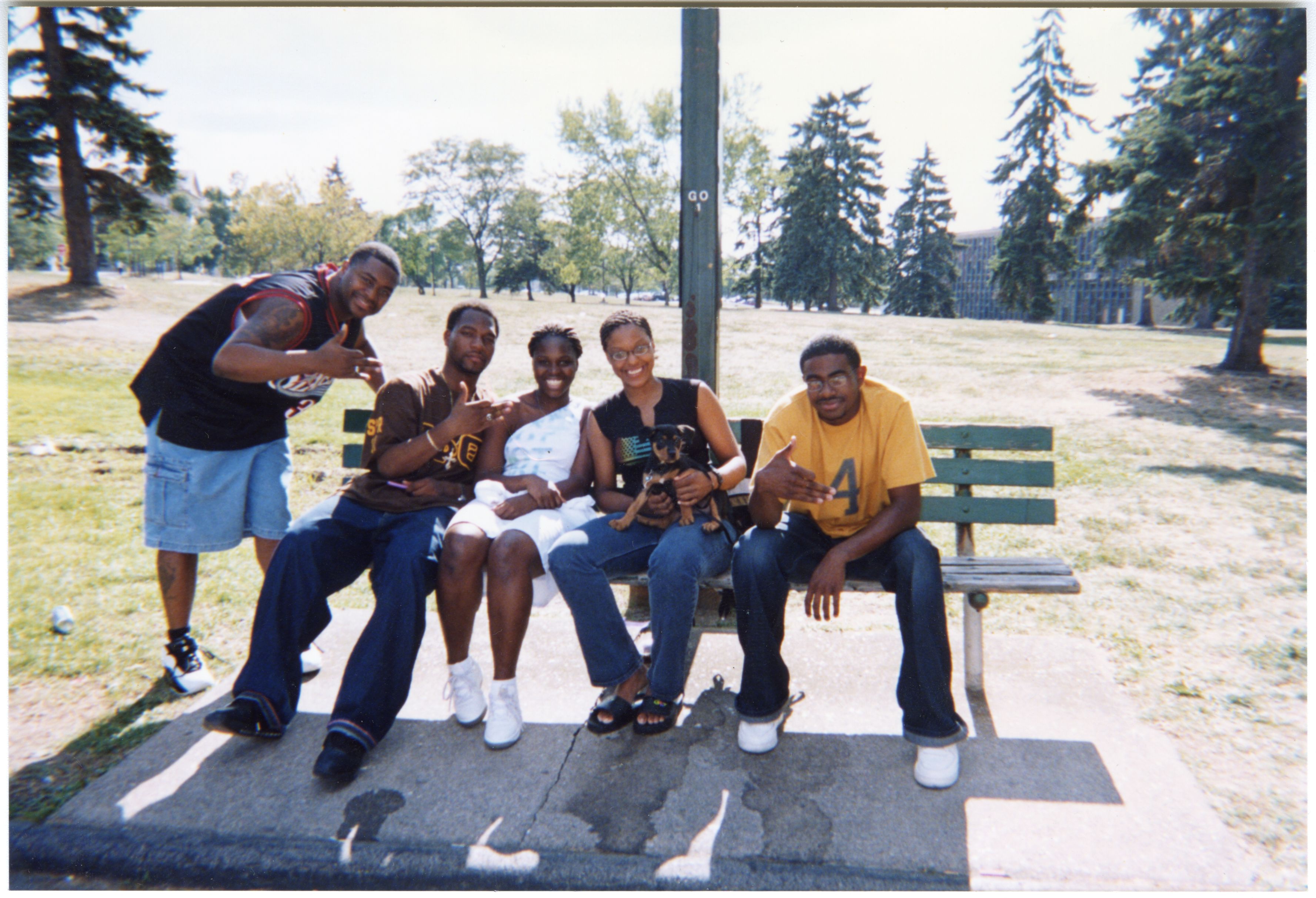 Color photograph of students at the 2002 Black Student Union Welcome Back Barbecue outside Goodyear Hall on South Campus.