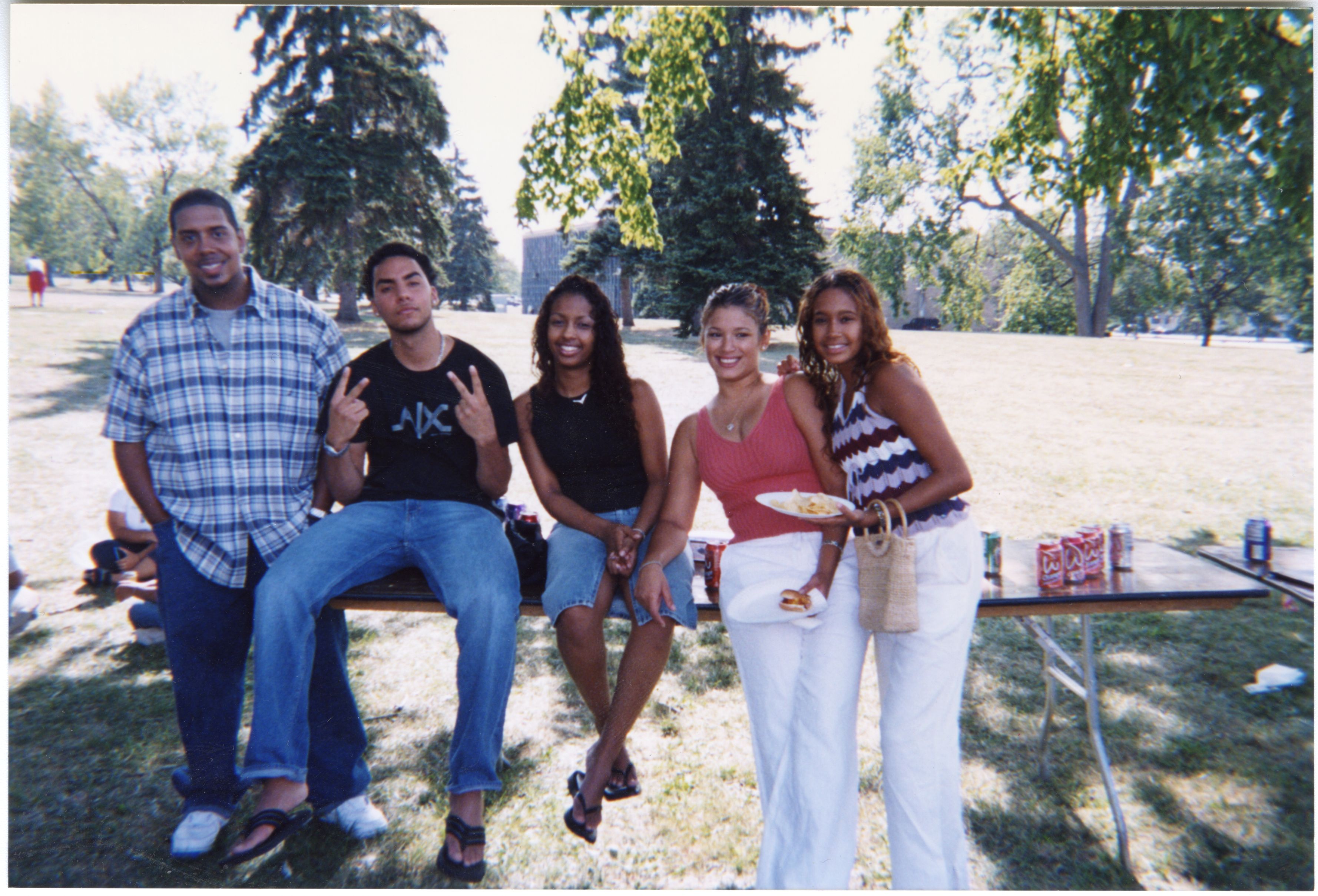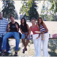 Color photograph of students at the 2002 Black Student Union Welcome Back Barbecue outside Goodyear Hall on South Campus.