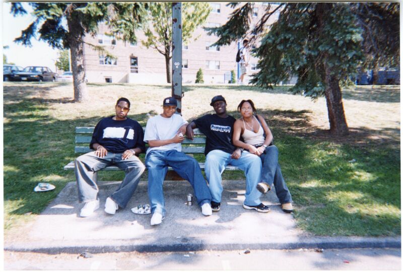 Color photograph of students at the 2002 Black Student Union Welcome Back Barbecue outside Goodyear Hall on South Campus.
