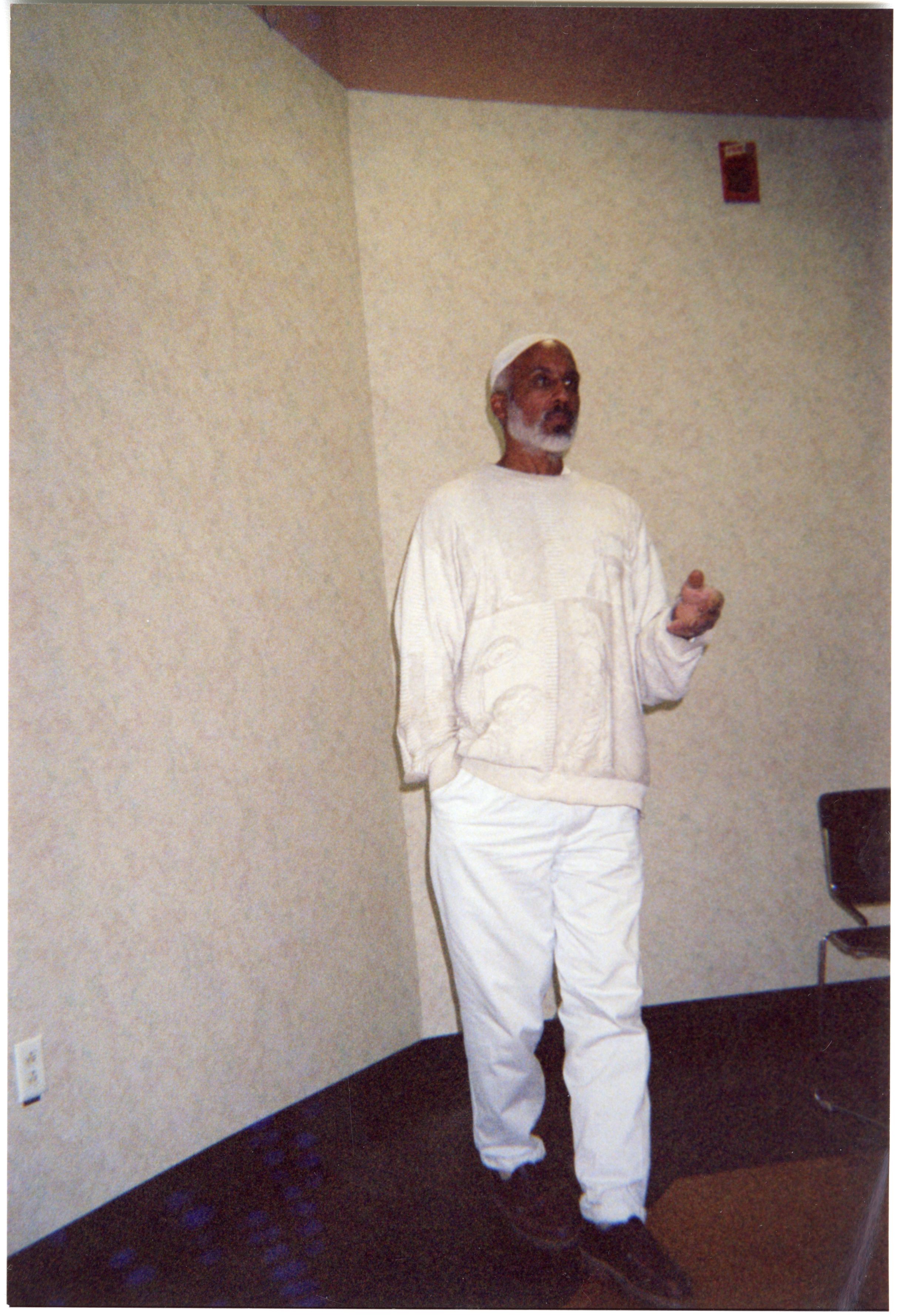 Color photograph of a speaker at Black Student Union's "Annual Pre-Kwanzaa Dinner" event in the Student Union, 2007.