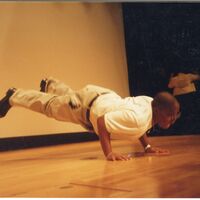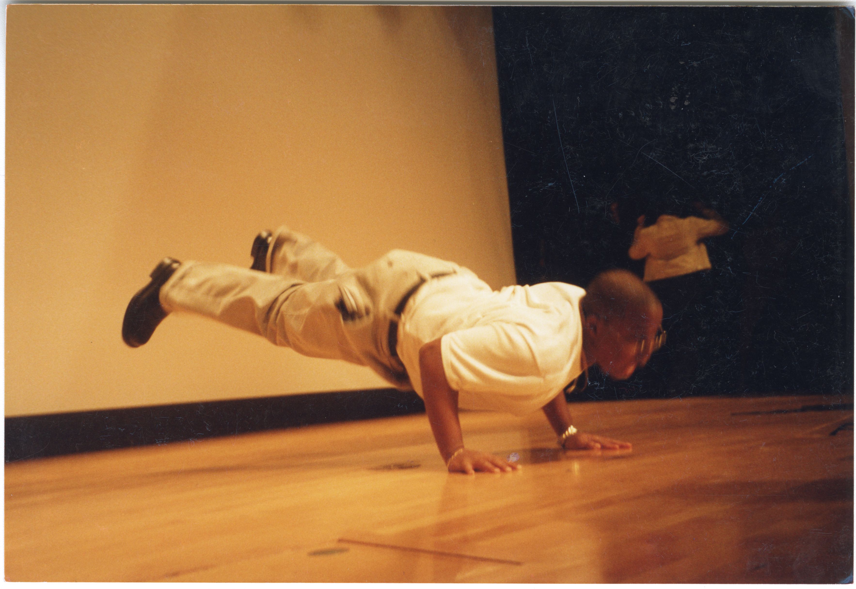Color photograph of a student performing at Black Student Union and Alpha Beta Sigma Sorority Inc.'s "Annual Charity Sickle Cell Auction" event in the Student Union, circa 2000s.