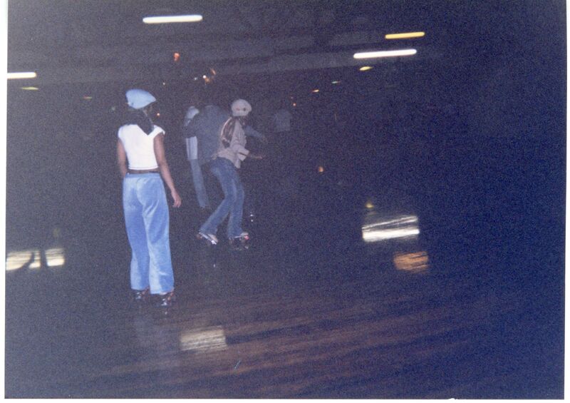 Color photograph of students at the 2003 Black Student Union Annual Skating Jam, "Playaz Ball."