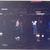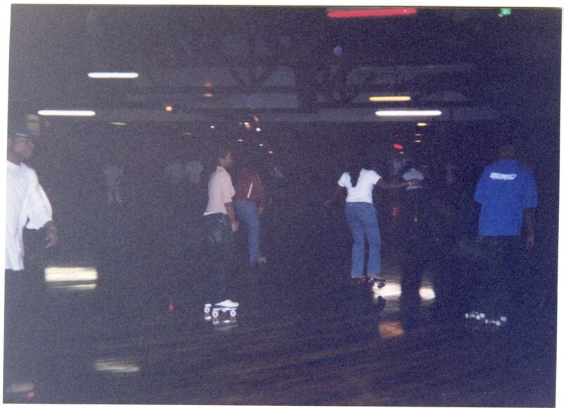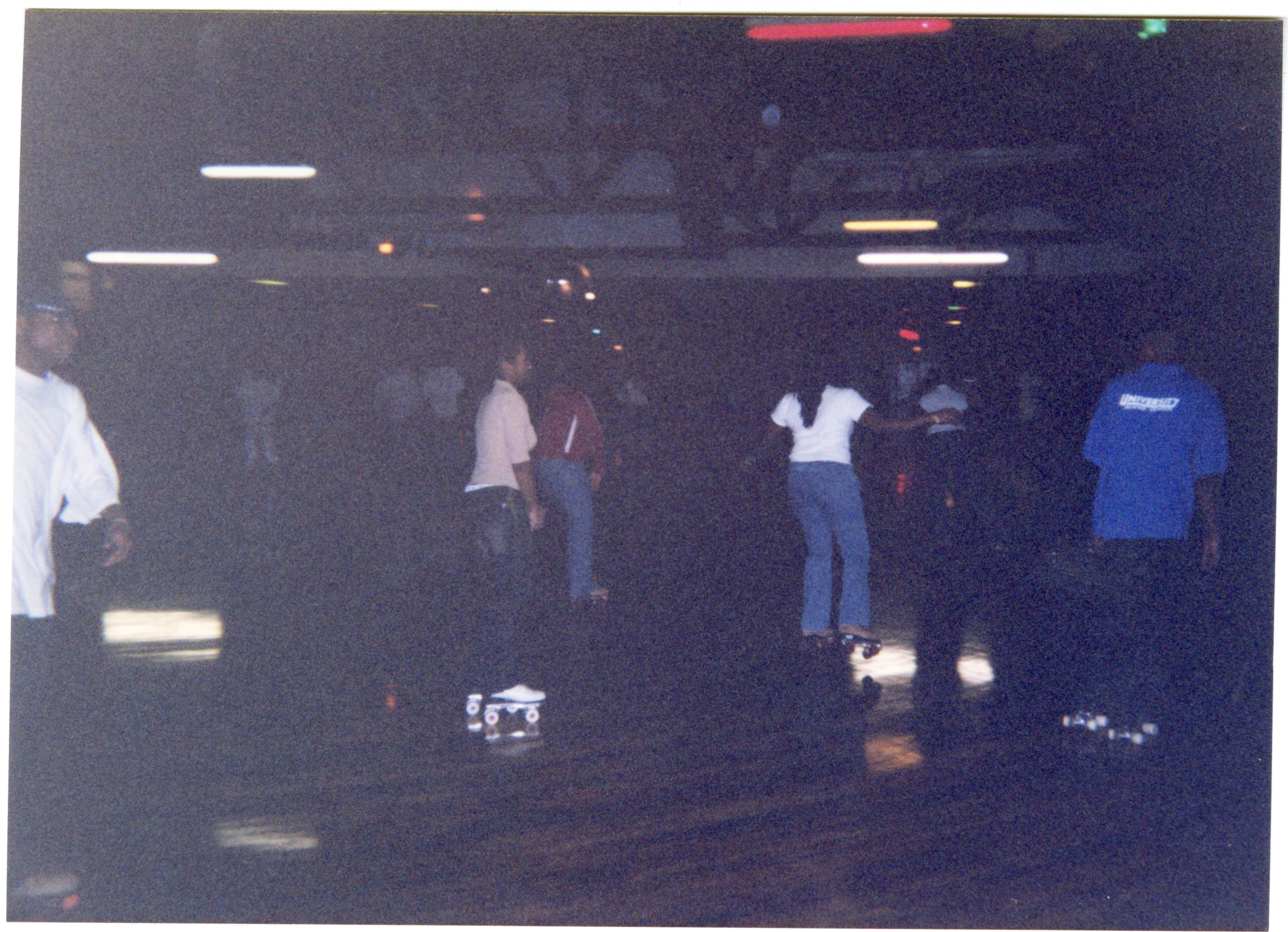 Color photograph of students at the 2003 Black Student Union Annual Skating Jam, "Playaz Ball."