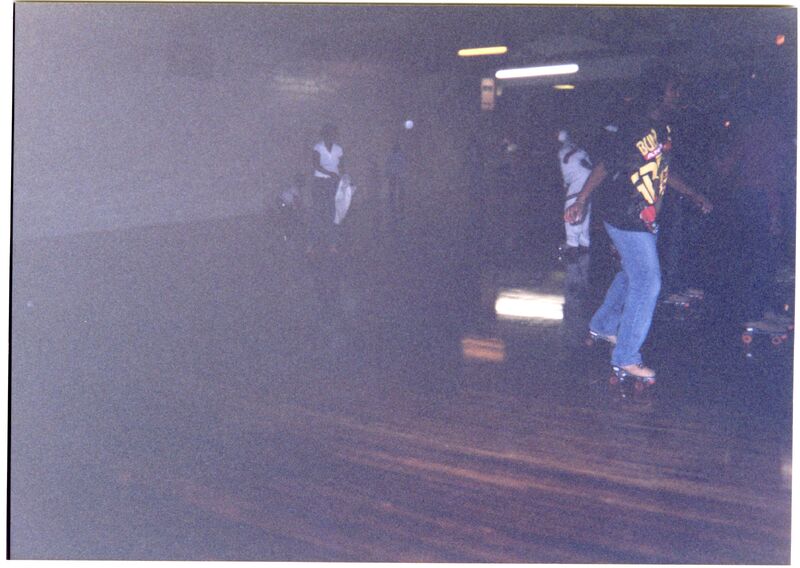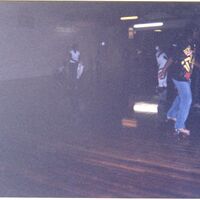 Color photograph of students at the 2003 Black Student Union Annual Skating Jam, "Playaz Ball."
