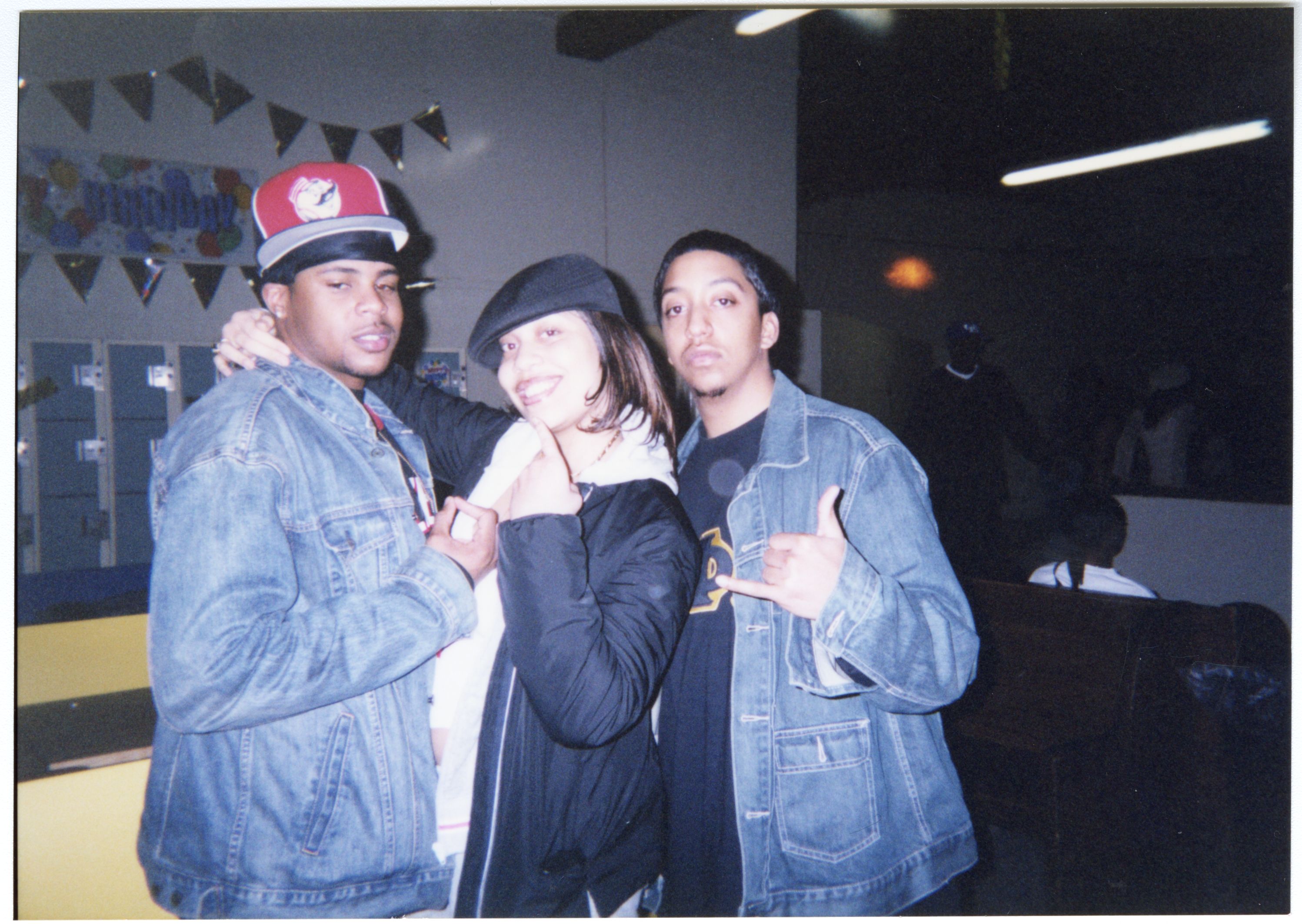 Color photograph of students at the 2003 Black Student Union Annual Skating Jam, "Playaz Ball."