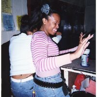 Color photograph of students at the 2003 Black Student Union Annual Skating Jam, "Playaz Ball."