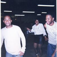 Color photograph of students at the 2003 Black Student Union Annual Skating Jam, "Playaz Ball."
