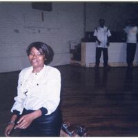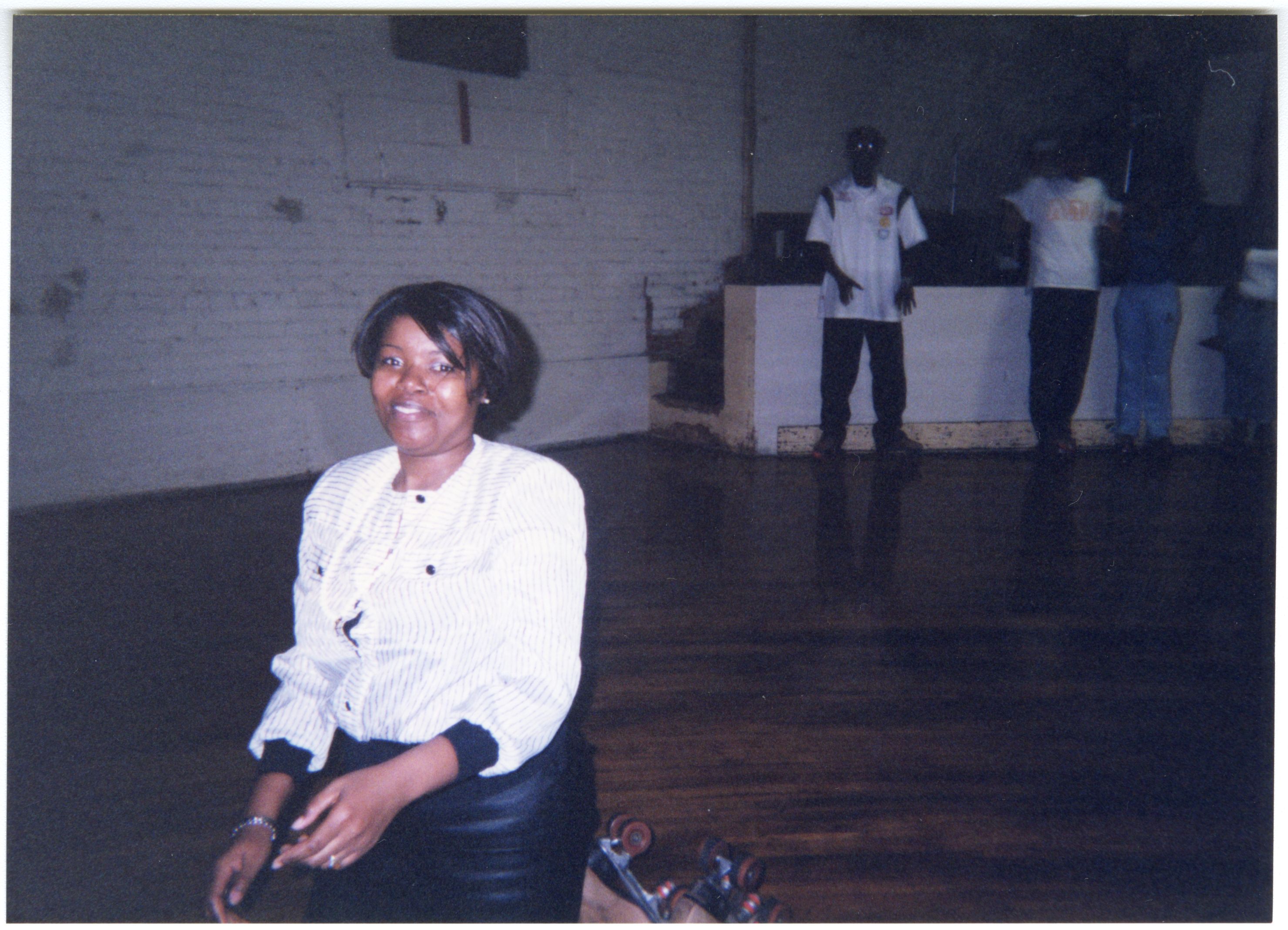 Color photograph of students at the 2003 Black Student Union Annual Skating Jam, "Playaz Ball."