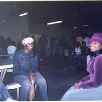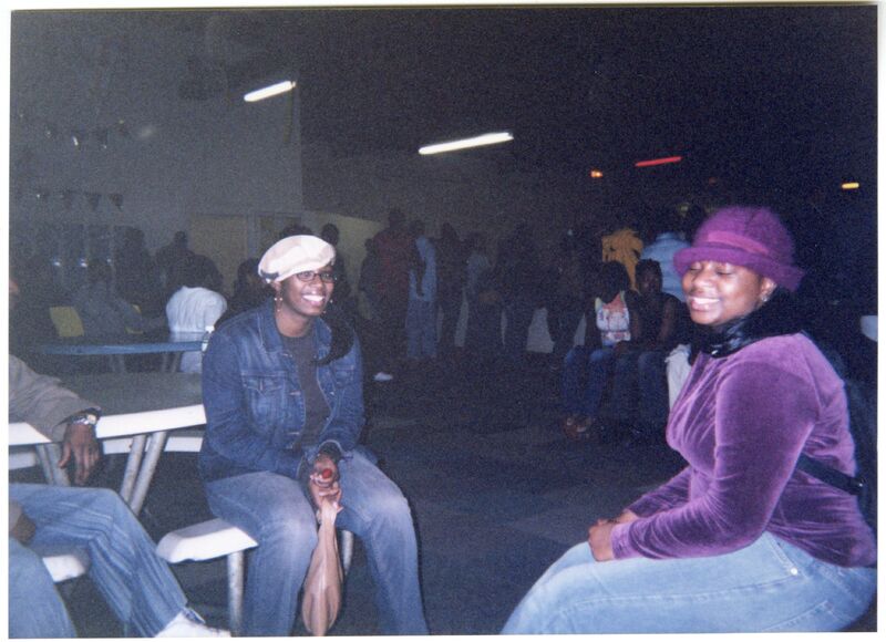 Color photograph of students at the 2003 Black Student Union Annual Skating Jam, "Playaz Ball."