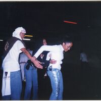 Color photograph of students at the 2003 Black Student Union Annual Skating Jam, "Playaz Ball."