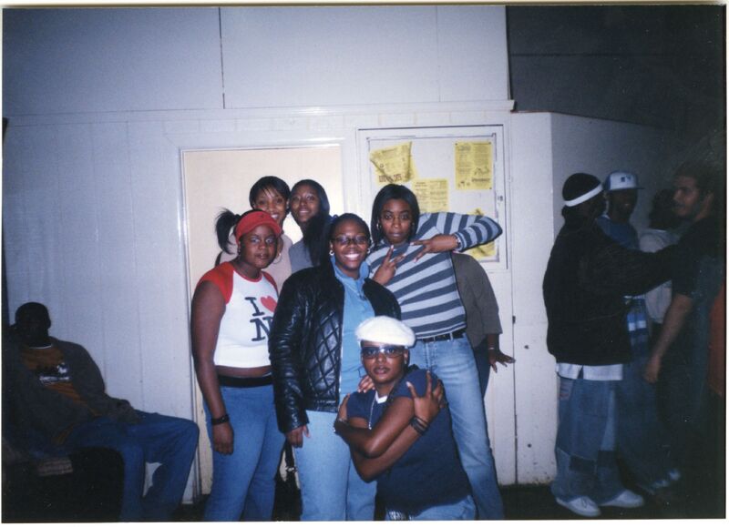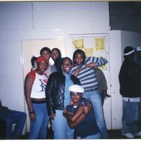 Color photograph of students at the 2003 Black Student Union Annual Skating Jam, "Playaz Ball."
