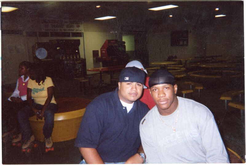 Color photograph of students at the 2003 Black Student Union Annual Skating Jam, "Playaz Ball."