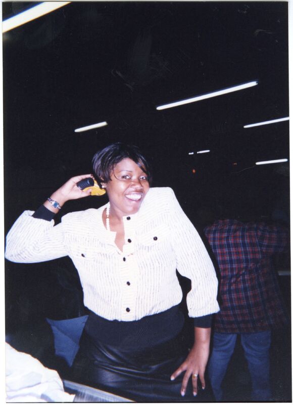 Color photograph of students at the 2003 Black Student Union Annual Skating Jam, "Playaz Ball."