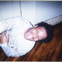 Color photograph of students at the 2003 Black Student Union Annual Skating Jam, "Playaz Ball."