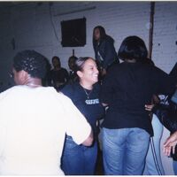 Color photograph of students at the 2003 Black Student Union Annual Skating Jam, "Playaz Ball."