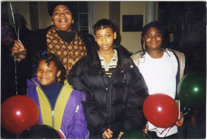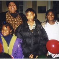 Color photograph of a family at an event at a venue, circa 1990s-2000s.