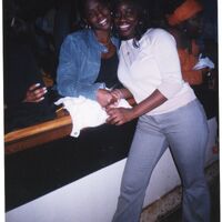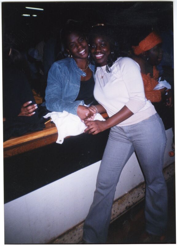 Color photograph of students at the 2003 Black Student Union Annual Skating Jam, "Playaz Ball."