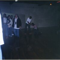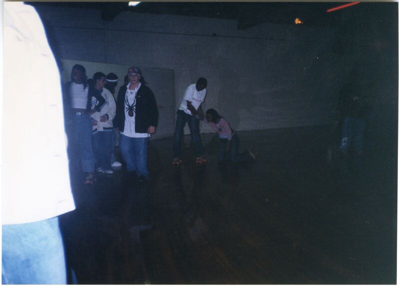 Color photograph of students at the 2003 Black Student Union Annual Skating Jam, "Playaz Ball."