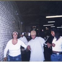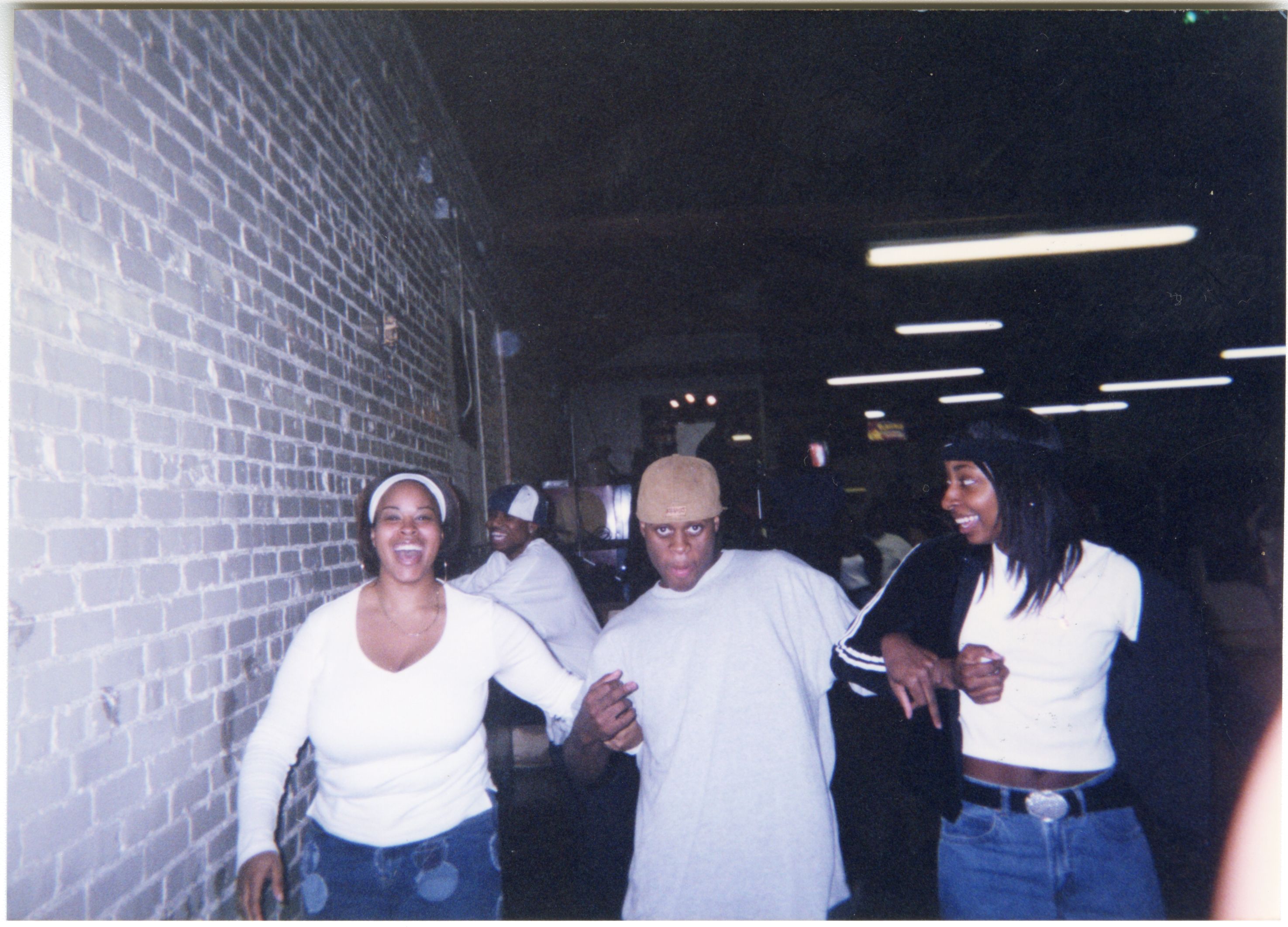 Color photograph of students at the 2003 Black Student Union Annual Skating Jam, "Playaz Ball."