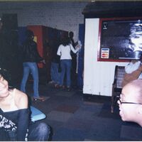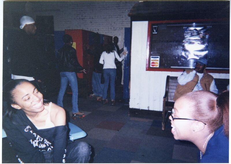 Color photograph of students at the 2003 Black Student Union Annual Skating Jam, "Playaz Ball."