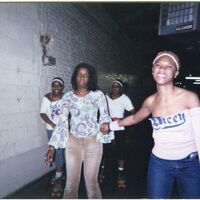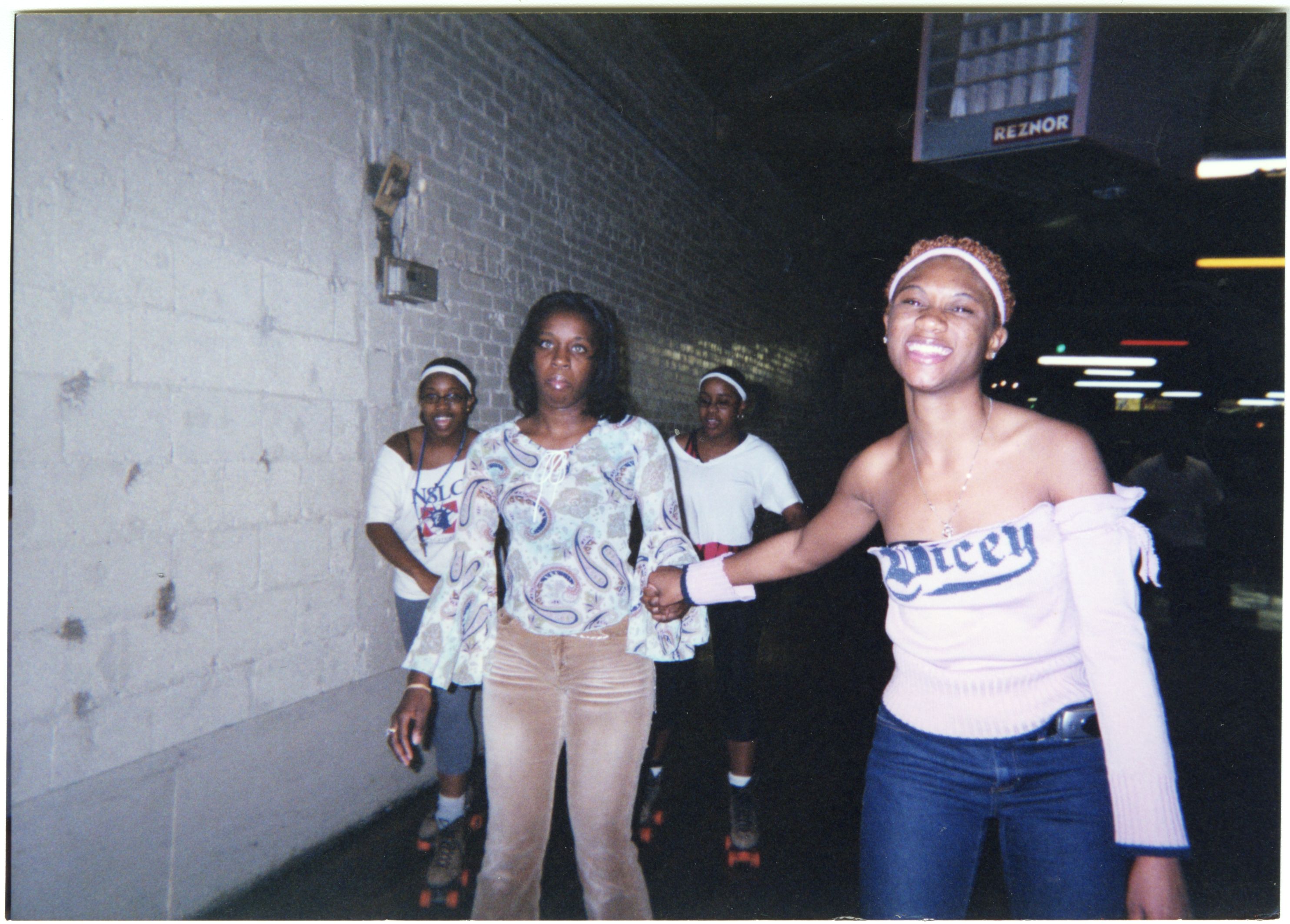 Color photograph of students at the 2003 Black Student Union Annual Skating Jam, "Playaz Ball."