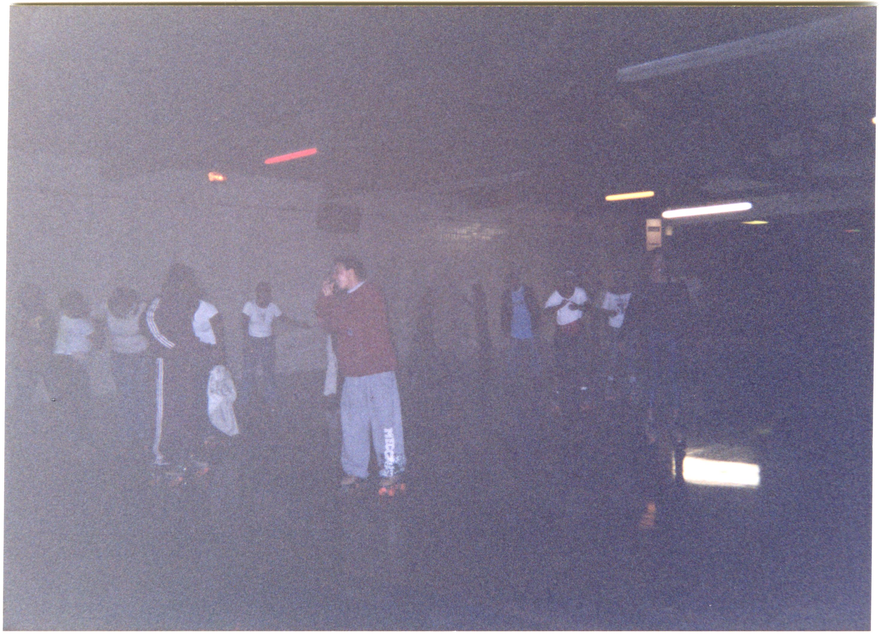 Color photograph of students at the 2003 Black Student Union Annual Skating Jam, "Playaz Ball."