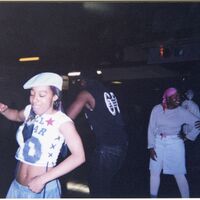 Color photograph of students at the 2003 Black Student Union Annual Skating Jam, "Playaz Ball."