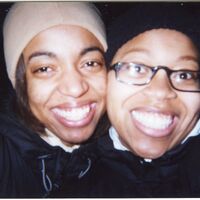 Color photograph of students at the 2003 Black Student Union Annual Skating Jam, "Playaz Ball."