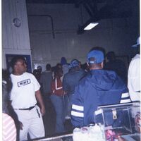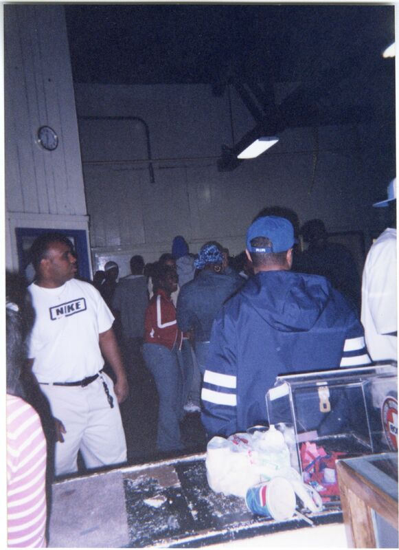 Color photograph of students at the 2003 Black Student Union Annual Skating Jam, "Playaz Ball."