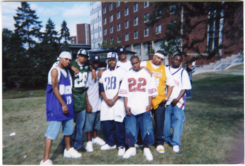 Color photograph of a group of students at an event outside of Goodyear Hall on South Campus, 2000.