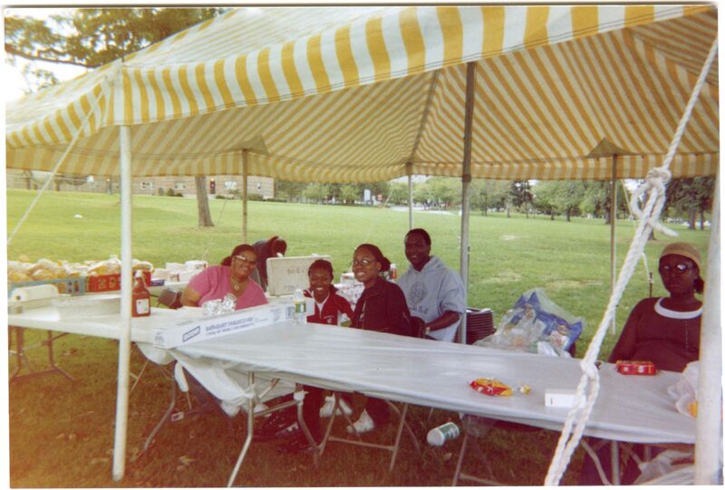 Color photograph of students at an event outside of Goodyear Hall on South Campus, 2000.