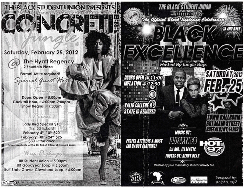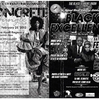 Photocopied flyer for Black Student Union Black Explosion events "Concrete Jungle" and "Black Excellence" on February 25, 2012.