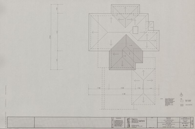 Plan of the roof and existing conditions of the garage, Graycliff, Derby, N.Y., by Bero Associates Architects, May 25, 1999
