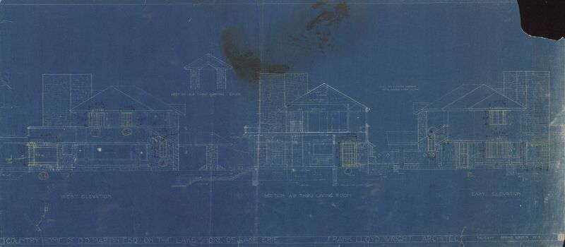 West and East Elevation of the Country Home of D. D. Martin, Esq. on the Lake Shore of Lake Erie, blueprint, August 19, 1926