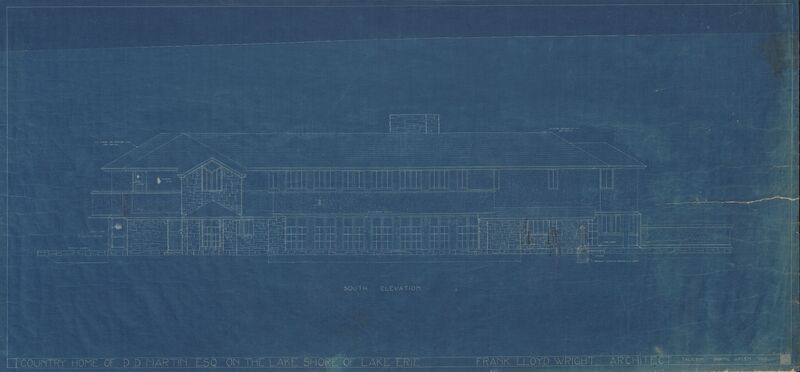 Blueprint of the south elevation of Graycliff, Derby, N.Y., by Frank Lloyd Wright, architect, circa 1926