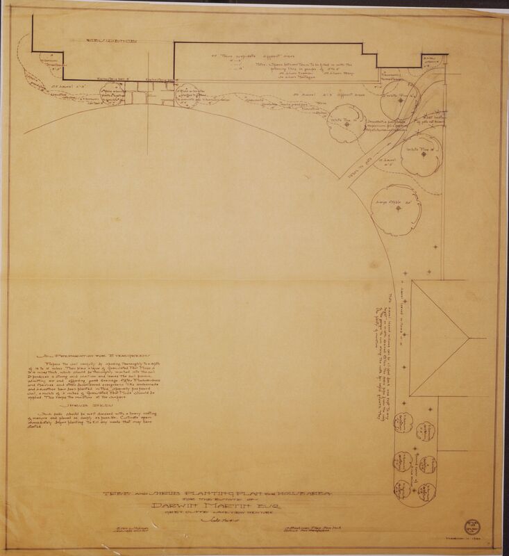 Tree and Shrub Planting Plan for House Area for the Estate of Darwin D. Martin, Esq., Greycliffe, Lake View, New York, March 11, 1930