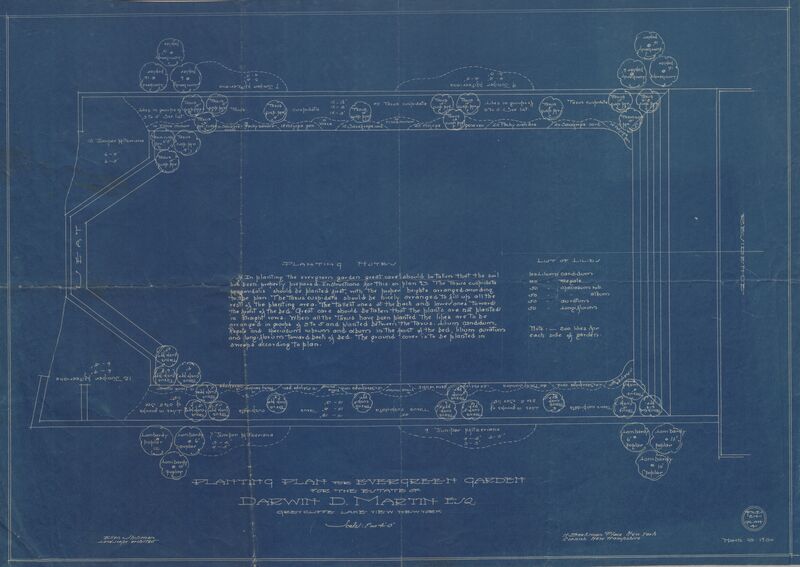 Planting Plan for Evergreen Garden for the Estate of Darwin D. Martin, Esq., Graycliffe, Lake Erie View New York, blueprint, March 13, 1930